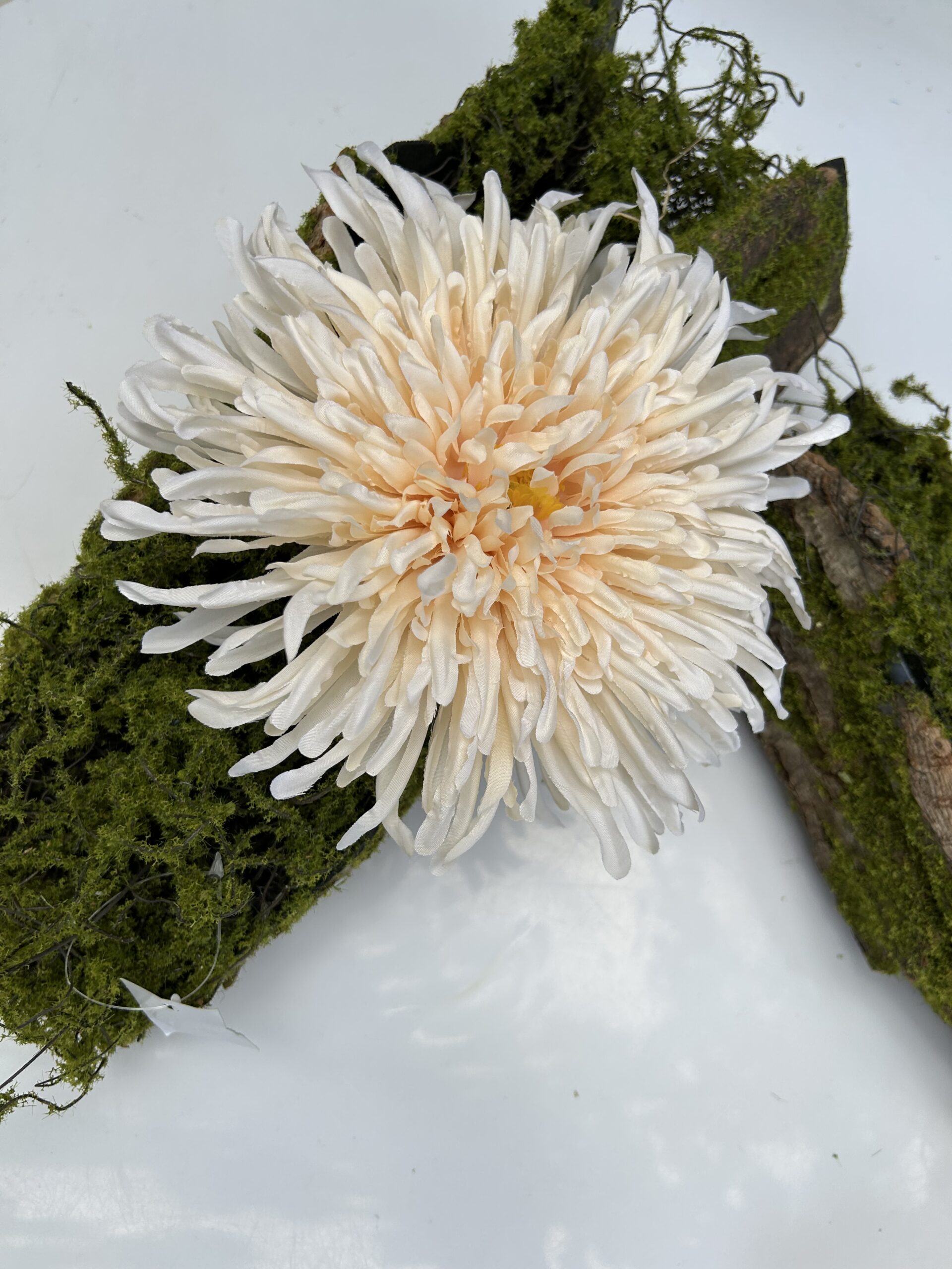 Ця штучна хризантема має вражаючий розмір 20 см, що додає їй об’єму і робить її ідеальним акцентом для будь-якої композиції. Її пелюстки виконані з високоякісного матеріалу, що створює ефект живої квітки з природною текстурою.