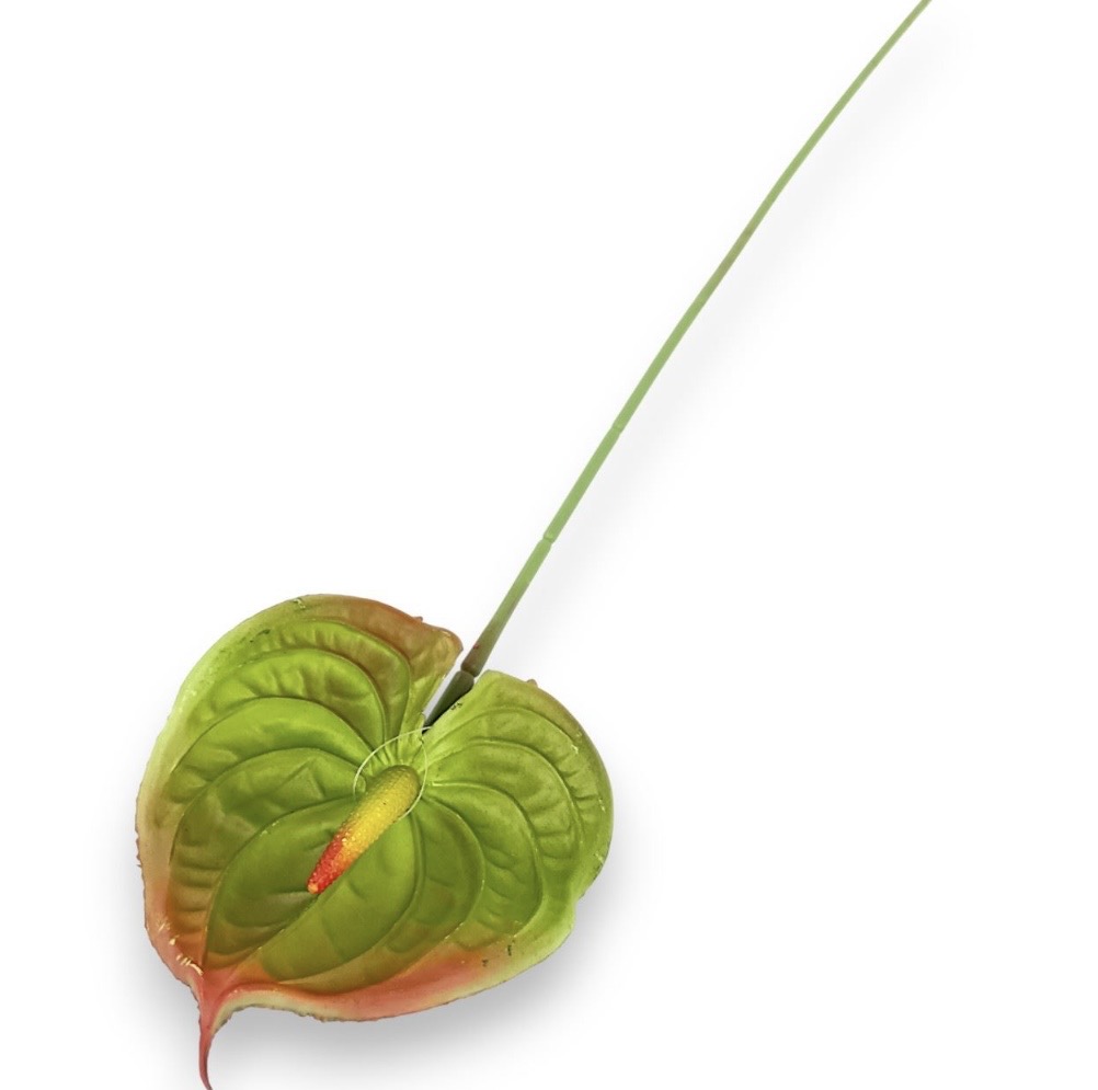 Антуріум, відомий також як «Чоловіче щастя» або «Квітка фламінго» — це символ сили, пристрасті та фінансового процвітання. Наша штучна копія серії Real Touch створена з використанням новітніх полімерів, що дозволяють відтворити найменші деталі живої природи. Глянцеве, серцеподібне «покривало» квітки має шкірясту структуру, а витончений початок (серединка) пофарбований з натуральним градієнтом.