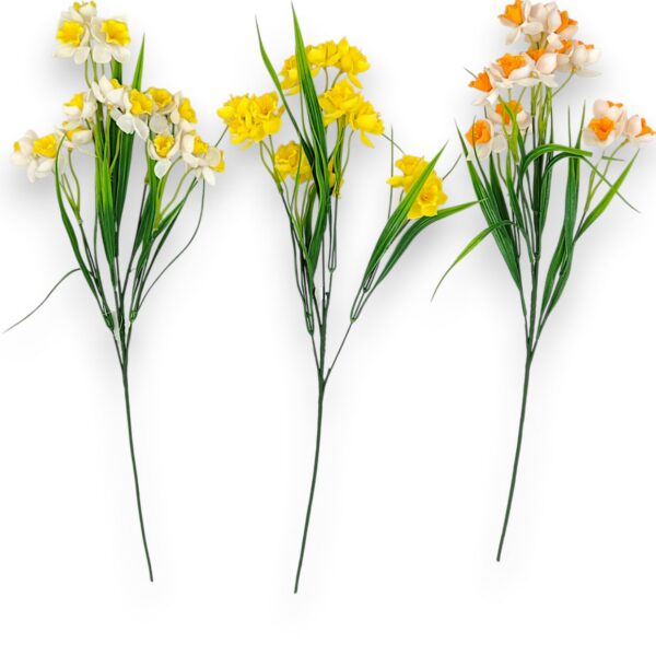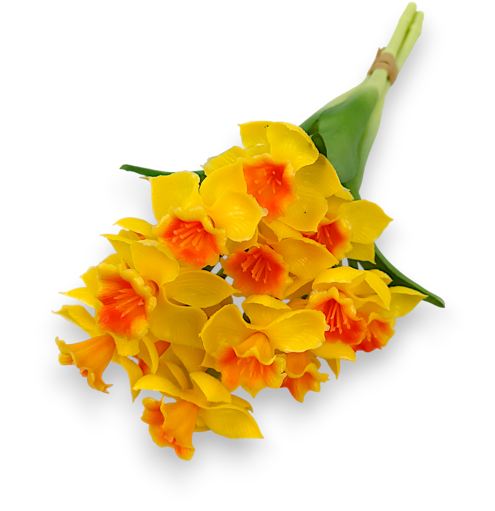 На відміну від звичайних штучних квітів, ці нарциси приємні на дотик (ефект «холодної пелюстки») і чудово тримають форму. Це ідеальне рішення для тих, хто хоче додати яскравих фарб в інтер’єр або створити святкову атмосферу без необхідності купувати живі букети щотижня.