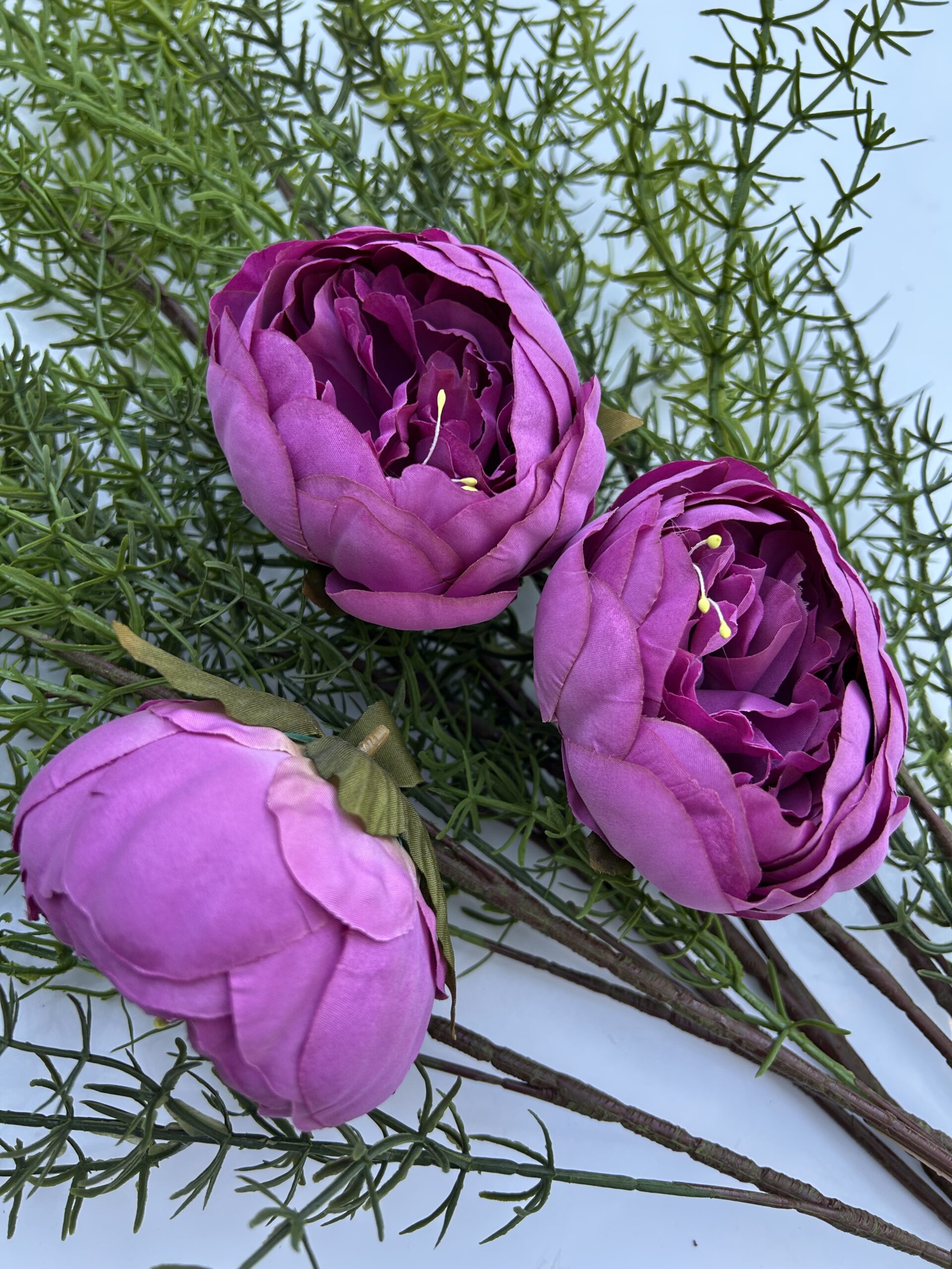 Піон — це символ ніжності, вишуканості та об’ємності, тому він прекрасно поєднується з трояндами, гортензією, ранункулюсами, тюльпанами, магнолією, анемонами та іншими штучними квітами.