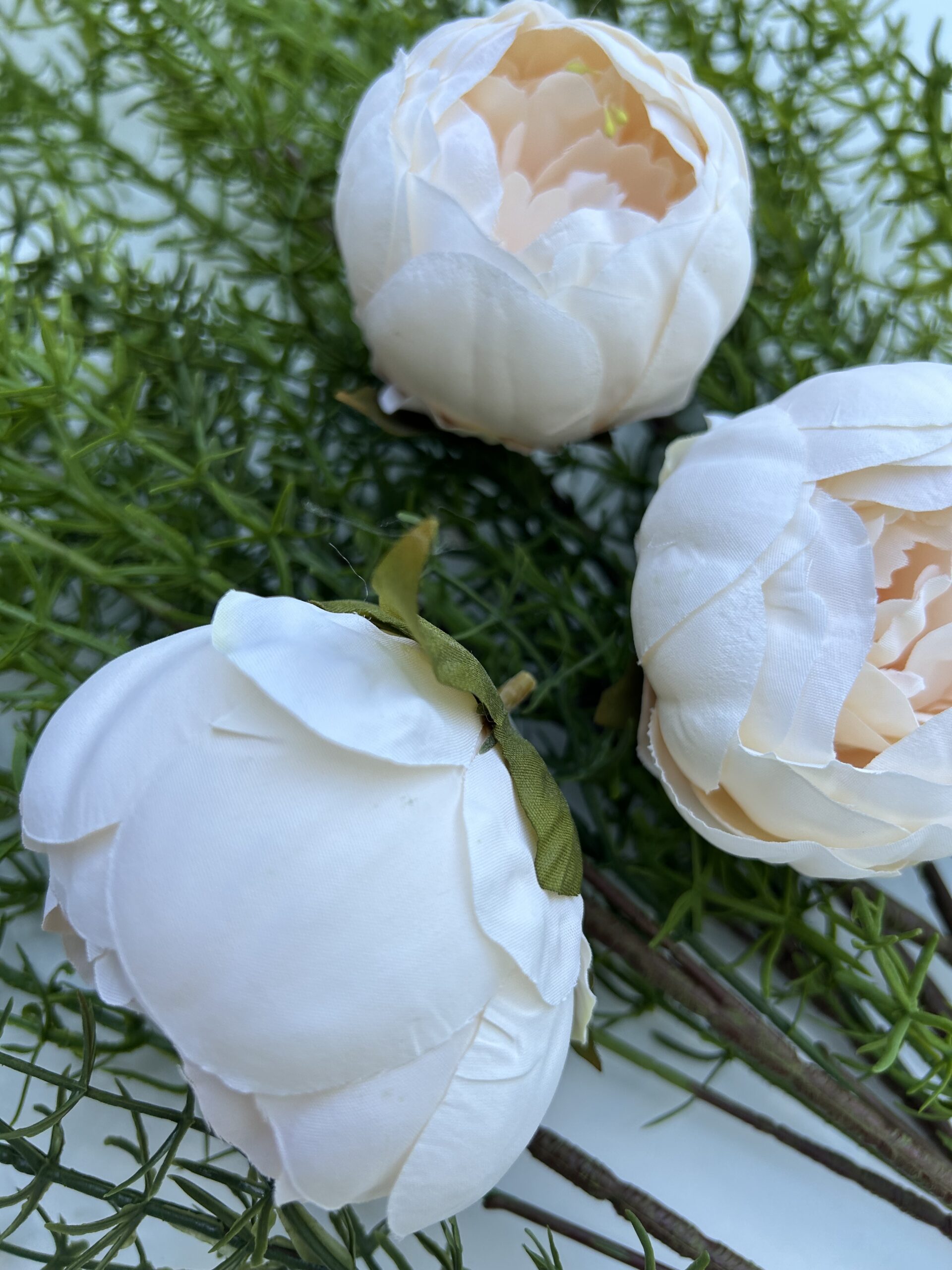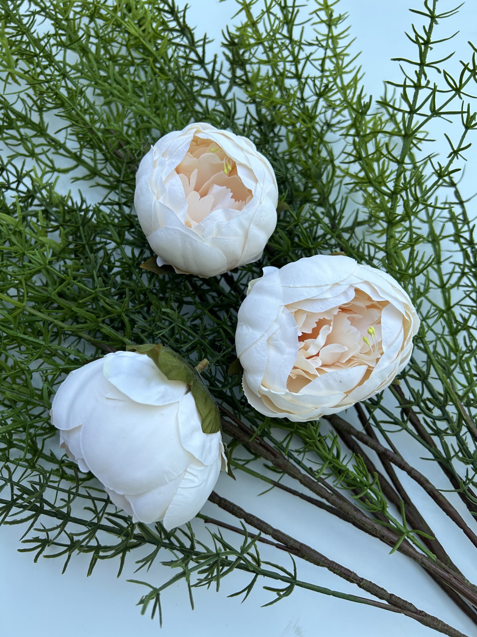 Завдяки щільній структурі матеріалу голова піона добре тримає форму, не мнеться, не обсипається та не вицвітає. Вона ідеально підходить для створення весільних букетів, композицій, вінків, фотозон, декору залів, подарункових наборів, топіаріїв, коробок із квітами та флористичних інсталяцій.