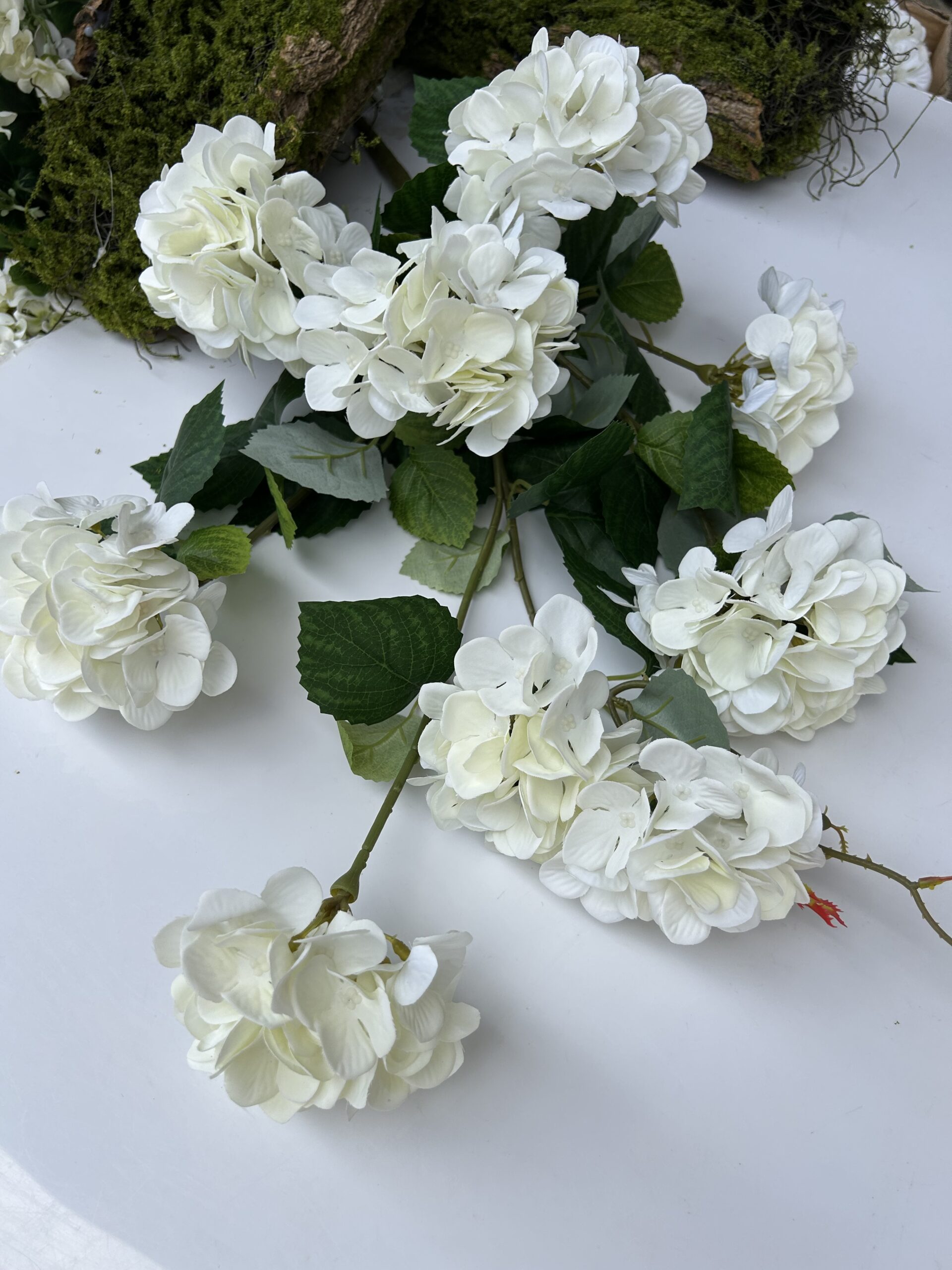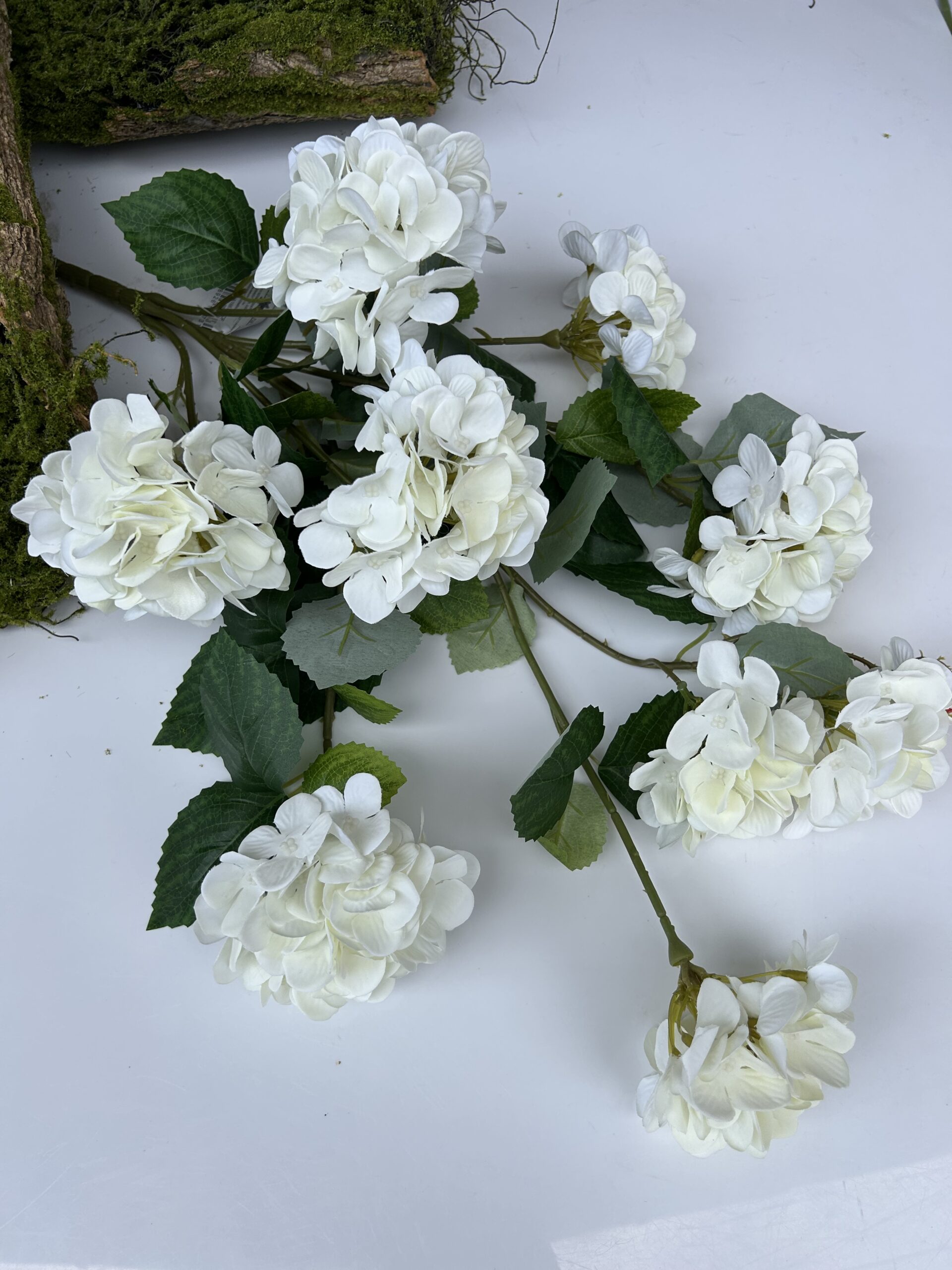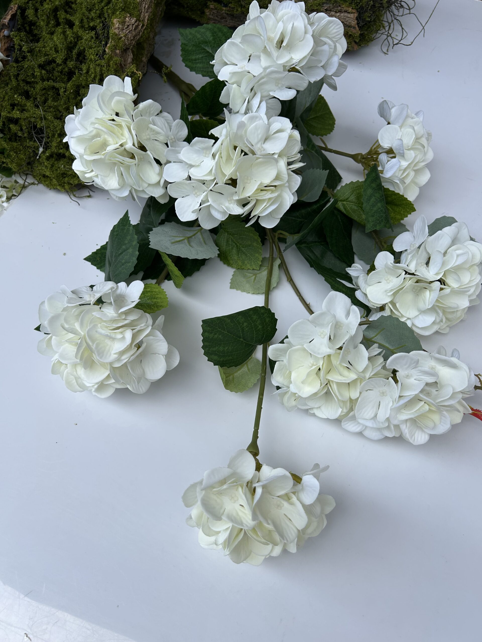 Ця гортензія миттєво привертає увагу — її багатоголовий силует і натуральні шовкові пелюстки створюють враження свіжозрізаної квітки. Ідеальна для тих, хто шукає не просто прикрасу, а візуальний акцент з характером.