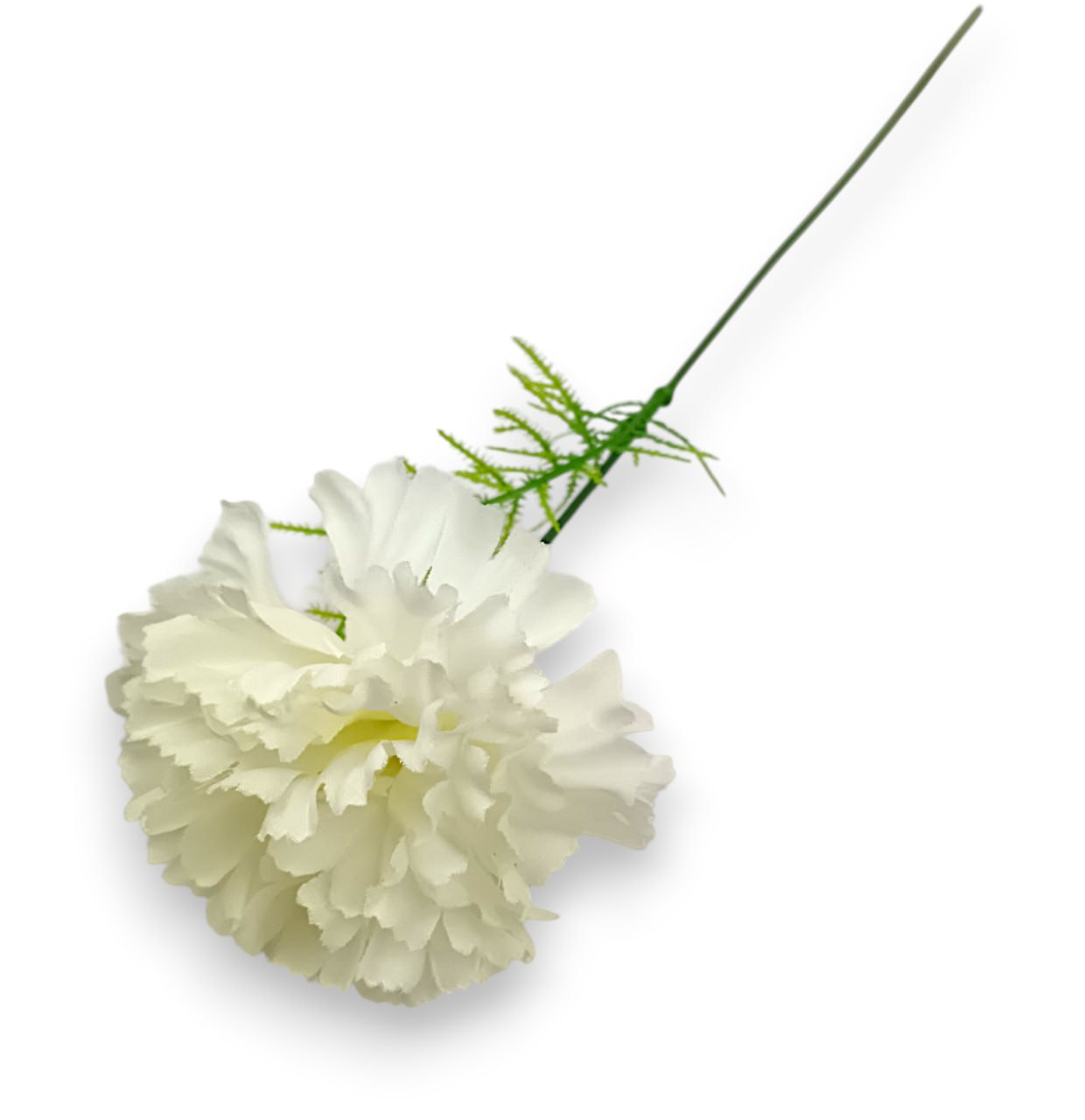 Елегантна гілка штучної гвоздики з одним великим, густо набитим бутоном висотою 50 см. Квітка має характерні гофровані (різьблені) пелюстки з якісного текстилю, що створюють неймовірний об’єм та фактуру. Відмінний базовий матеріал для створення стильних монобукетів, класичних композицій та сучасного інтер’єрного декору.