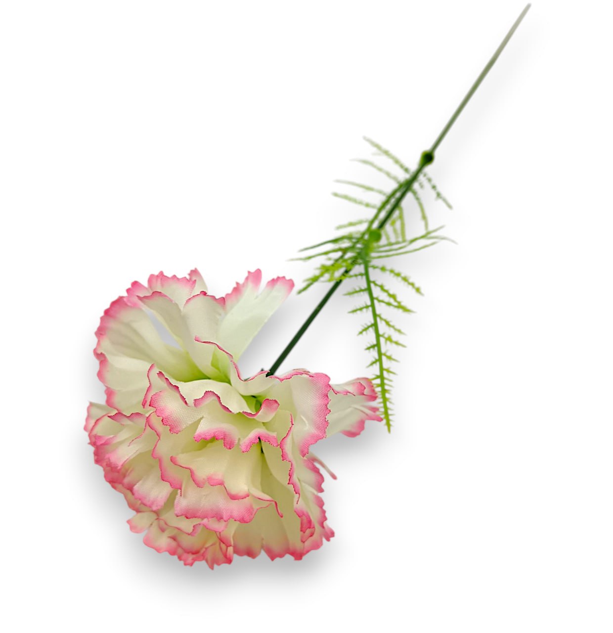 Елегантна гілка штучної гвоздики з одним великим, густо набитим бутоном висотою 50 см. Квітка має характерні гофровані (різьблені) пелюстки з якісного текстилю, що створюють неймовірний об’єм та фактуру. Відмінний базовий матеріал для створення стильних монобукетів, класичних композицій та сучасного інтер’єрного декору.