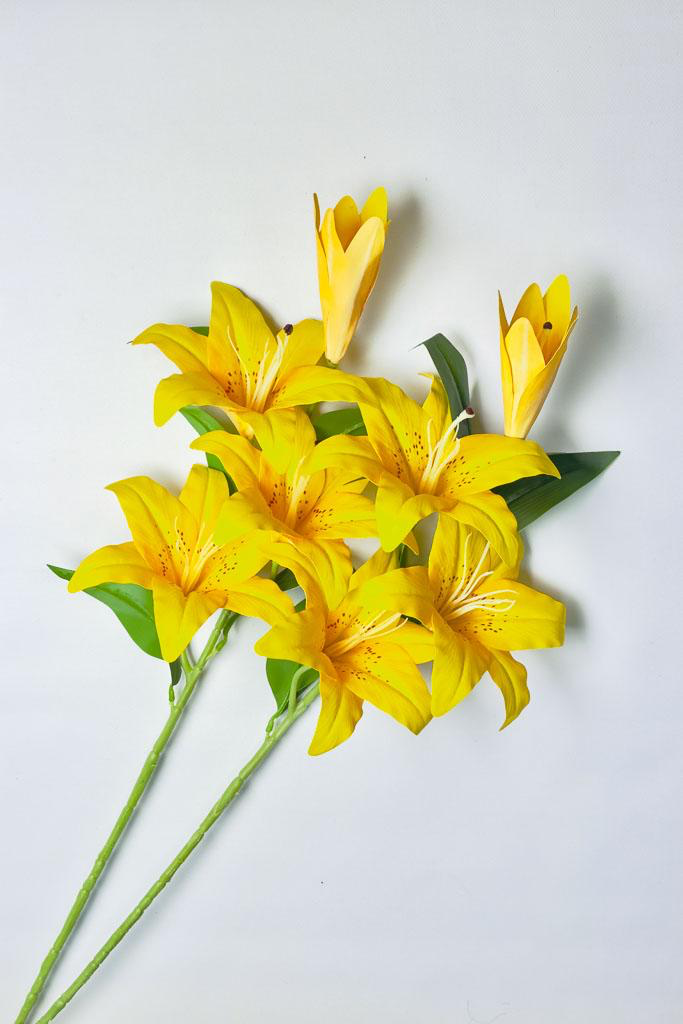 Головна перевага: На відміну від живих лілій, наша штучна гілка не має різкого, дурманного запаху та пилку, що бруднить поверхні. Це робить її абсолютно гіпоалергенною та безпечною для спалень, ресторанів чи медичних клінік.