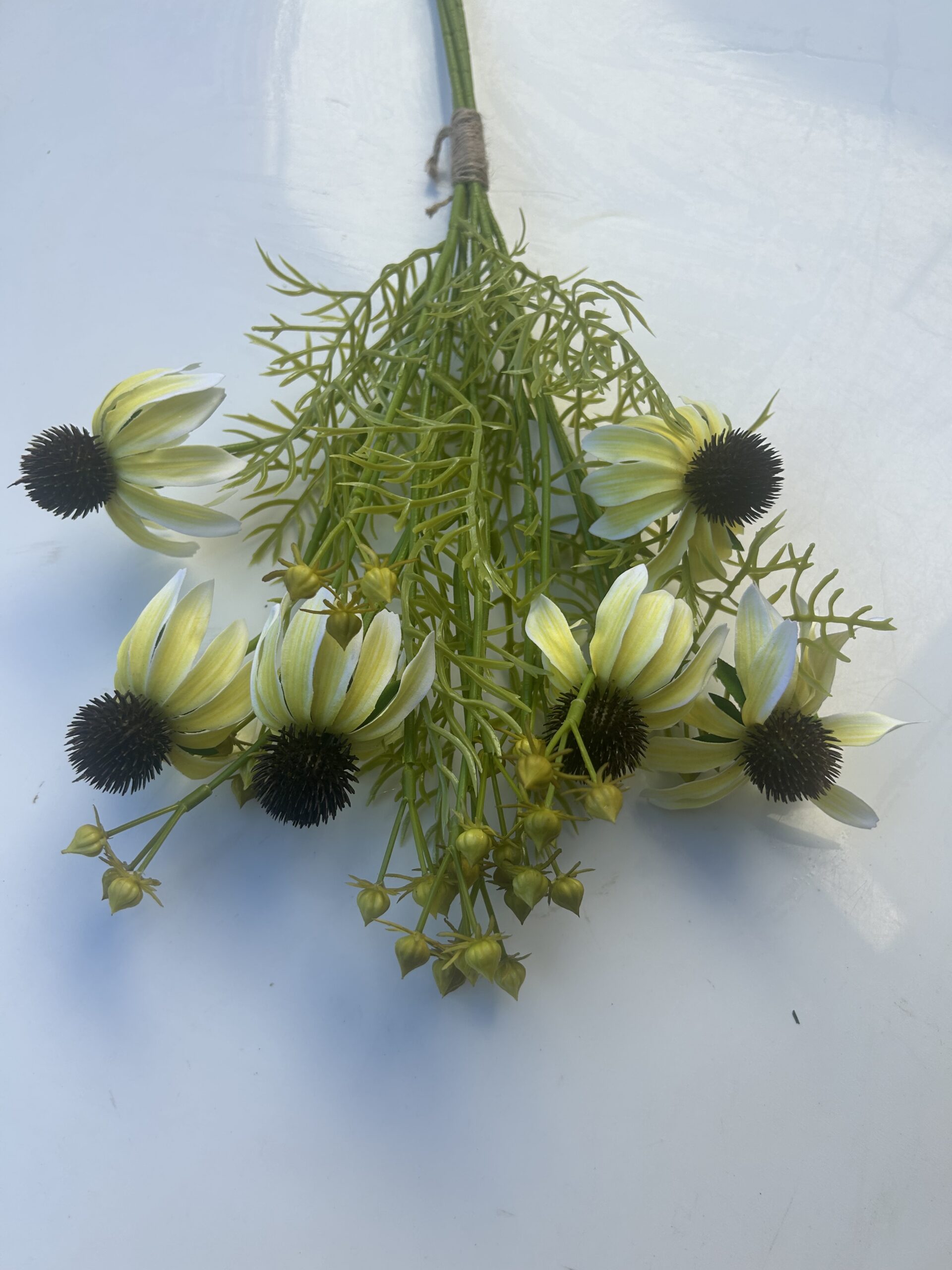 Яскрава та фактурна гілка штучної ехінацеї з виразним, об’ємним центром (конусом) та ніжними опущеними пелюстками. Ця квітка ідеально передає природну красу літніх та осінніх полів. Чудовий вибір для створення атмосферних збірних композицій у стилі рустік, бохо та затишного інтер’єрного озеленення.