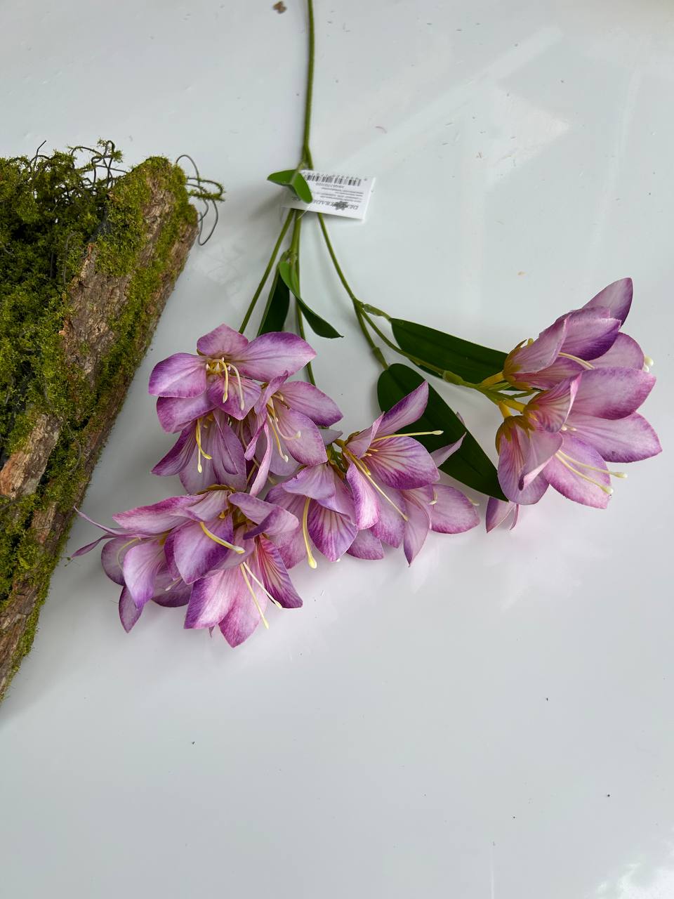 Фрезія — це квітка, що символізує довіру, молодість та весняне пробудження. Її унікальна будова, коли бутони граційно вишиковуються в один ряд уздовж зігнутого стебла, додає будь-якій композиції особливої динаміки, легкості та вишуканості. Наша штучна копія передає цю тендітність з максимальною ботанічною точністю.