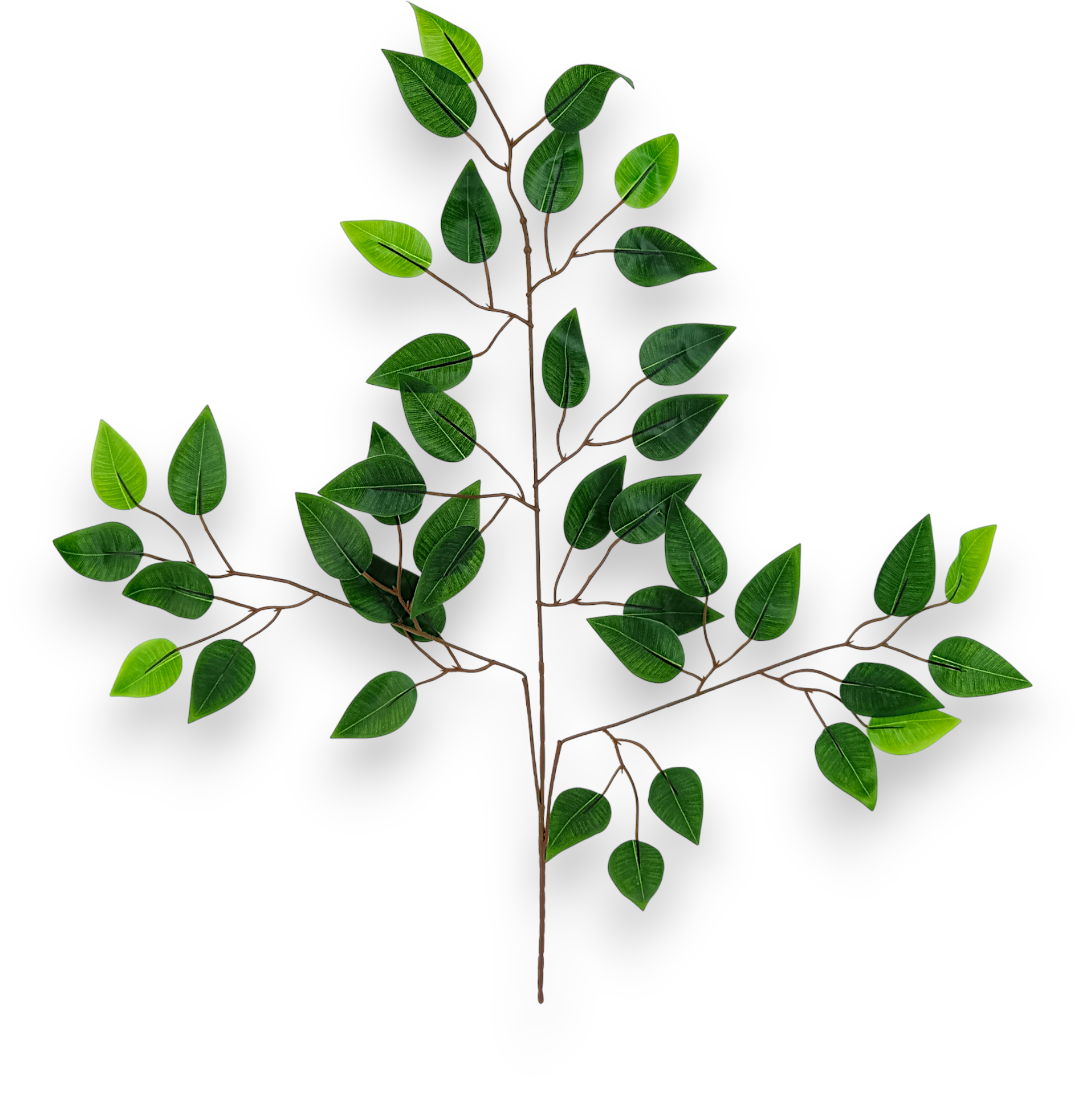 Штучні листочки Бенджаміна — це універсальна зелень для створення флористичних композицій, декору інтер’єрів і вітрин. Листочки мають реалістичну форму, насичений зелений колір і приємну текстуру, що точно імітує натуральну рослину фікус Бенджамін.