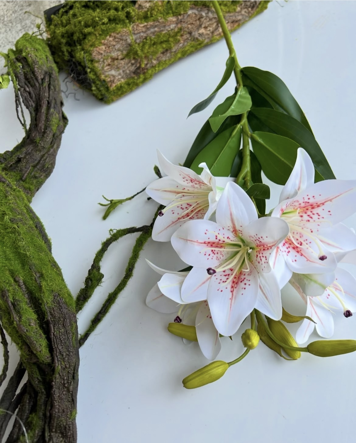 Лілія гелева штучна 90 см преміум якості — втілення вишуканості та елегантності. Великі пелюстки з гелевого матеріалу виглядають надзвичайно реалістично, а ніжна текстура на дотик майже не відрізняється від живої квітки.