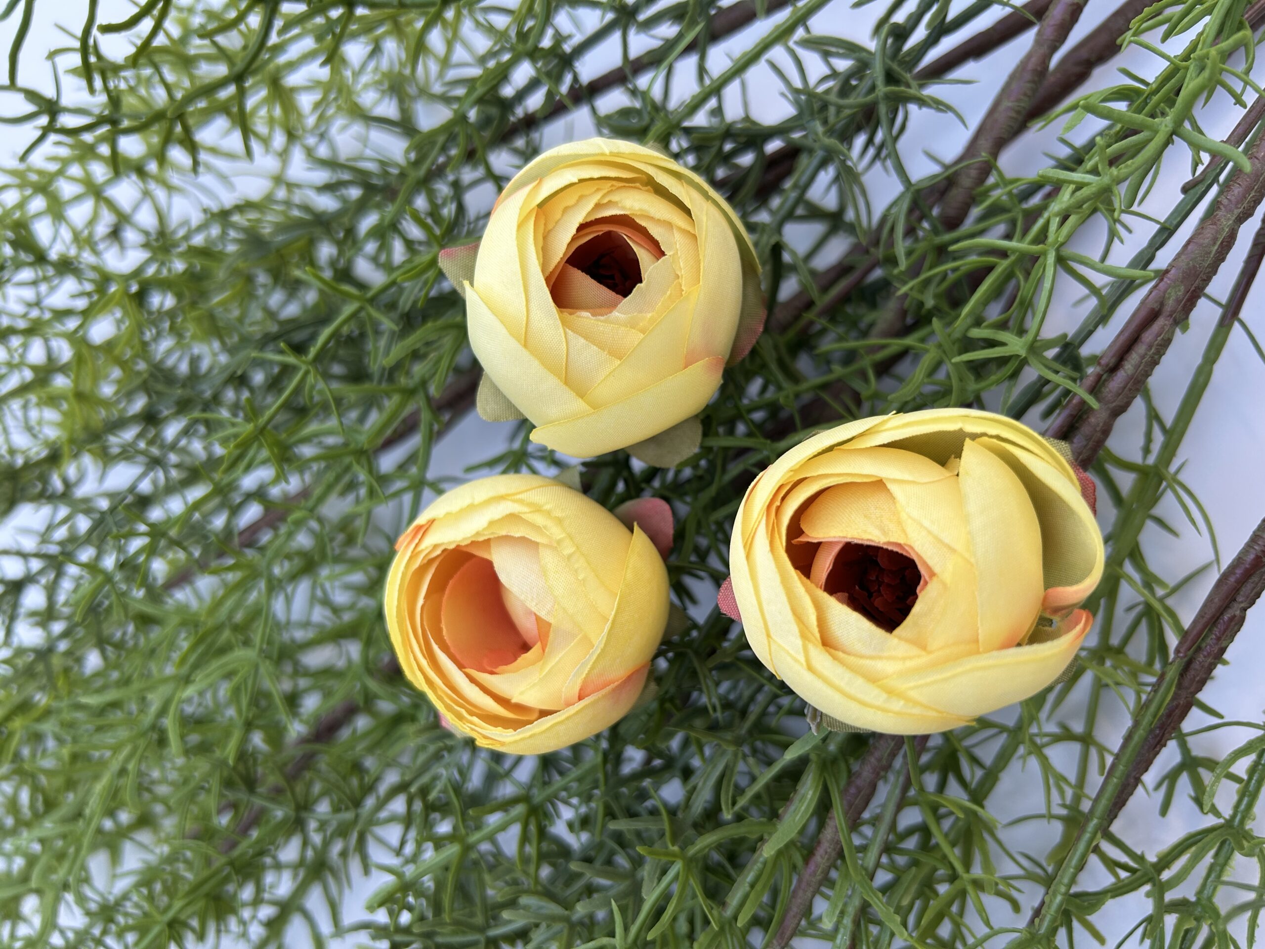 Голова ронункулюса штучна — це розкішна декоративна квітка, створена для професійної флористики та стильного інтер’єрного декору. Преміальна текстильна тканина з тонкою фактурою точно передає вигляд живих пелюсток: м’які об’ємні хвилі, натуральні переходи кольору та пишна форма роблять квітку максимально реалістичною та елегантною.