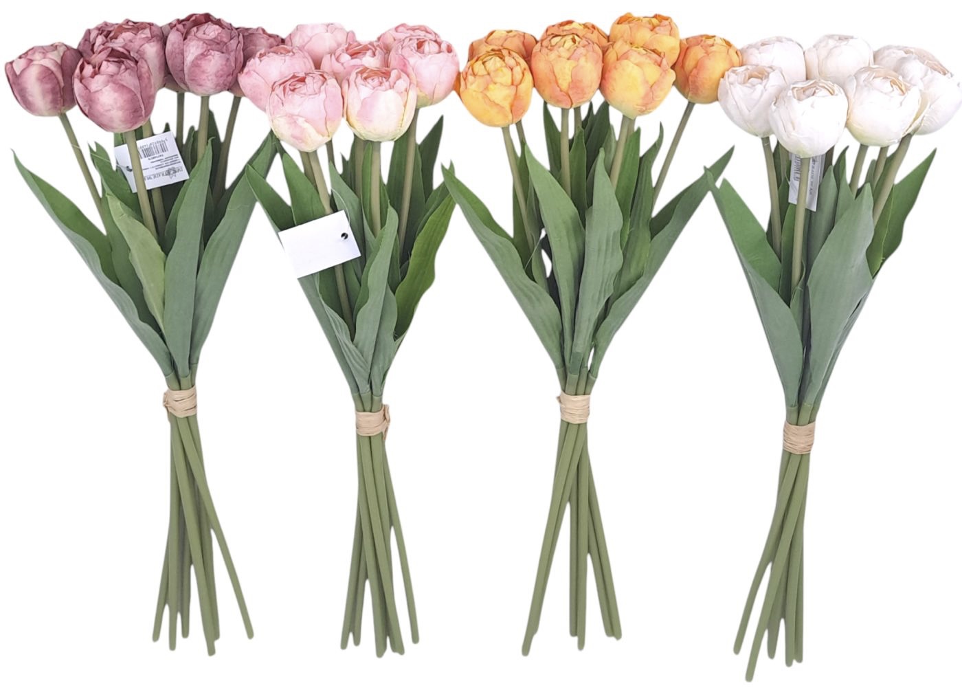 Штучні шовкові тюльпани — це декоративні квіти преміум-якості, які максимально точно відтворюють вигляд і текстуру живих тюльпанів. Пелюстки виготовлені з гелевого матеріалу, завдяки чому вони м’які на дотик, еластичні та мають натуральний матово-шовковистий ефект. Форма бутона продумана до дрібниць, а стебло з листям виглядає реалістично та акуратно.