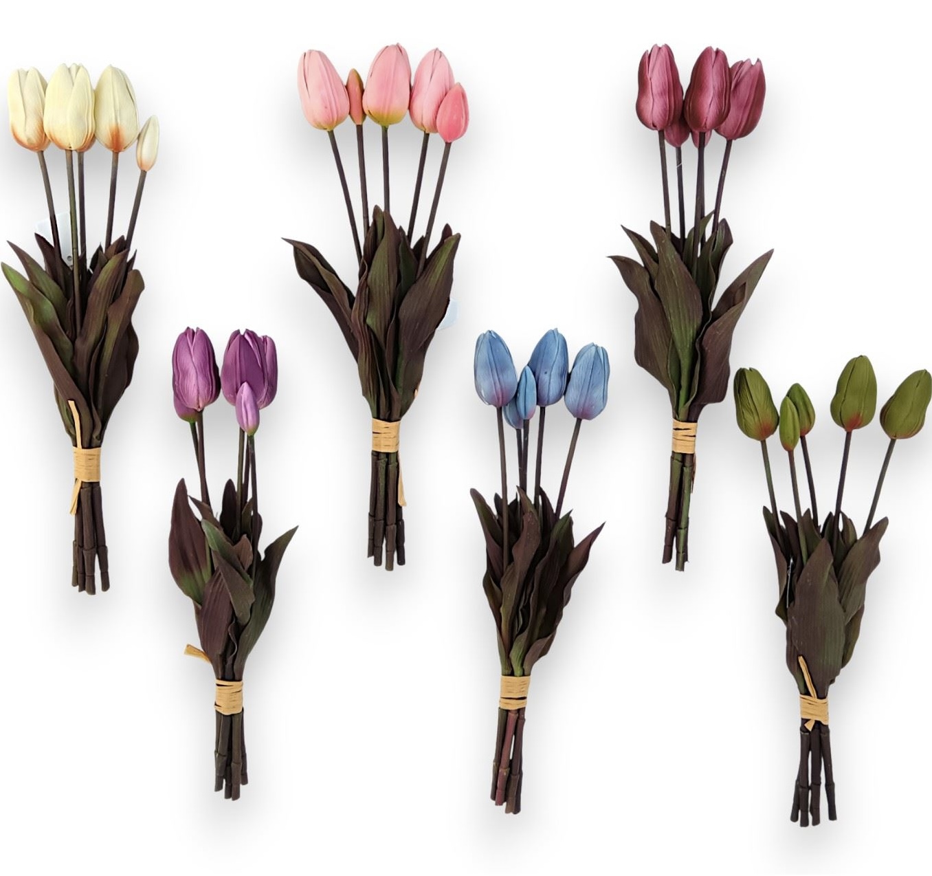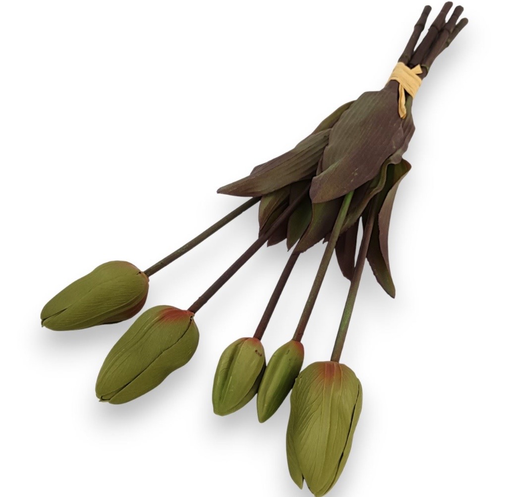 Ці тюльпани не в’януть, не осипаються та не змінюють колір з часом. Вони не потребують поливу, сонячного світла чи спеціального догляду, що робить їх ідеальним варіантом для постійного декору. Квіти безпечні, не викликають алергічних реакцій і підходять для використання в будь-яких приміщеннях.