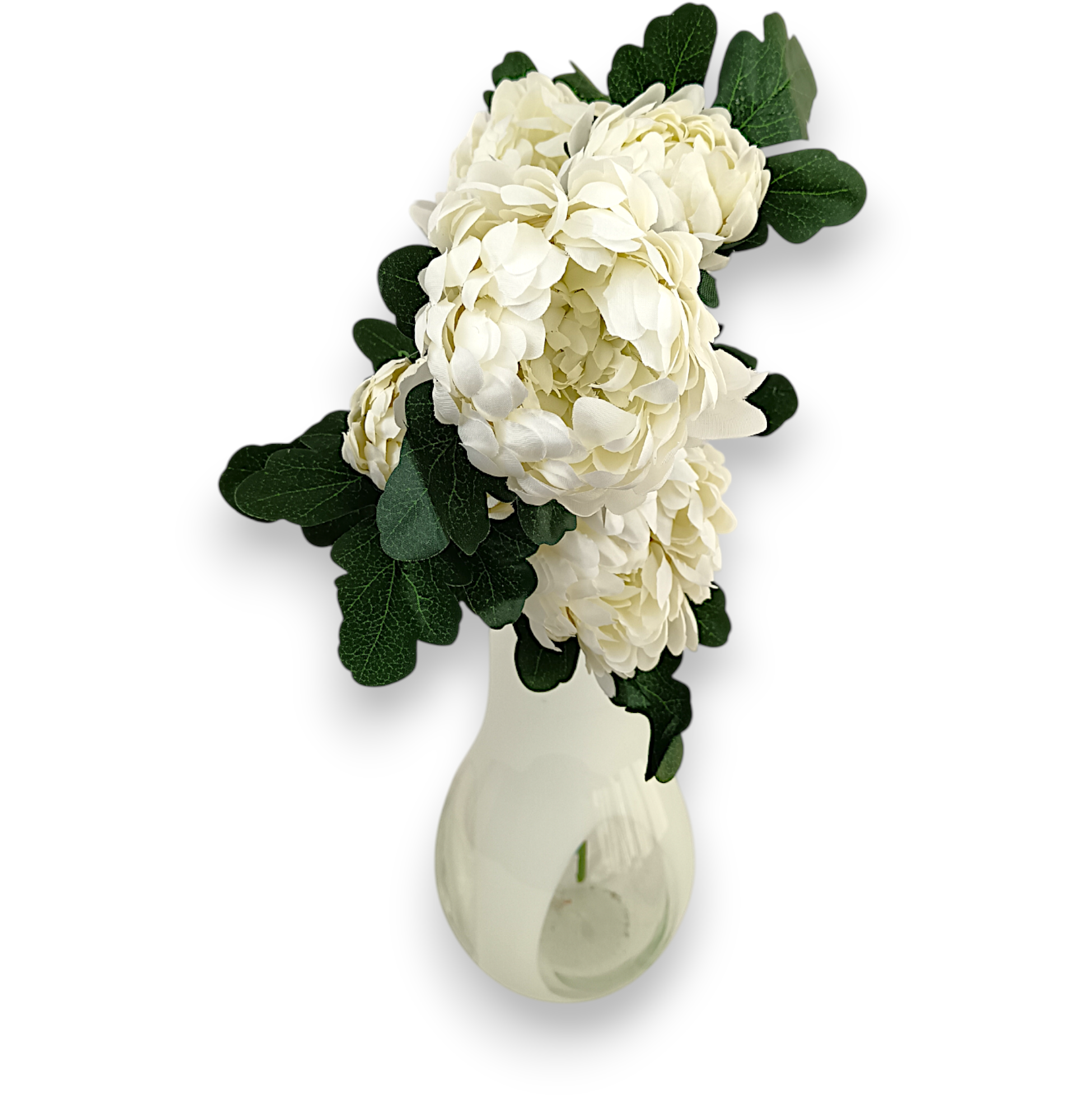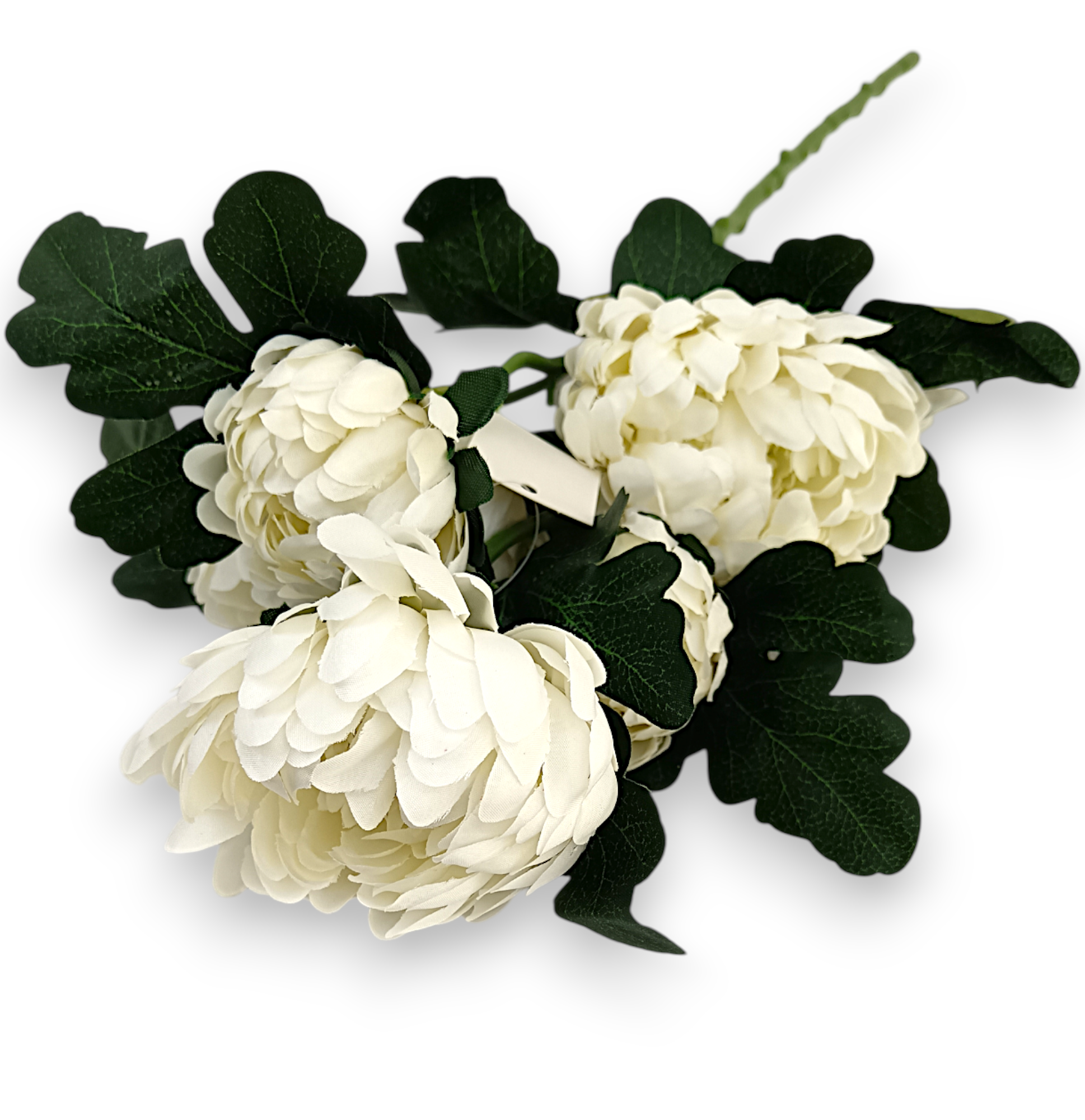 Штучні хризантеми — яскраві, об’ємні квіти, що виглядають як живі. Завдяки м’яким пелюсткам і натуральним відтінкам, вони чудово підходять для створення букетів, весільних композицій, декору фотозон, вітрин або інтер’єрів.