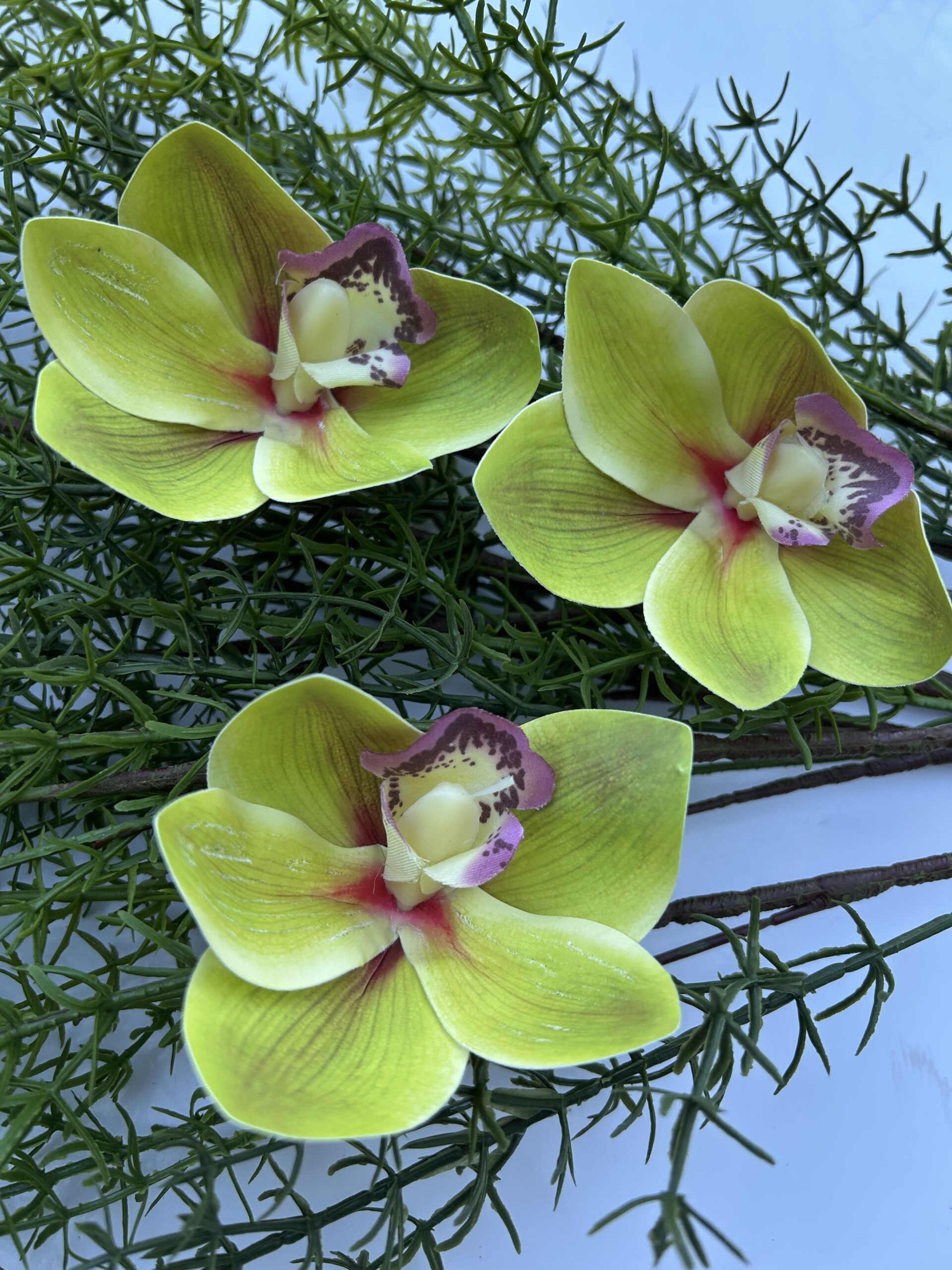 Штучний цимбідіум особливо цінується за свою екзотичність, ніжність та універсальність — він легко поєднується з трояндами, ліліями, орхідеями, гортензією, ранункулюсами та іншими декоративними квітами.