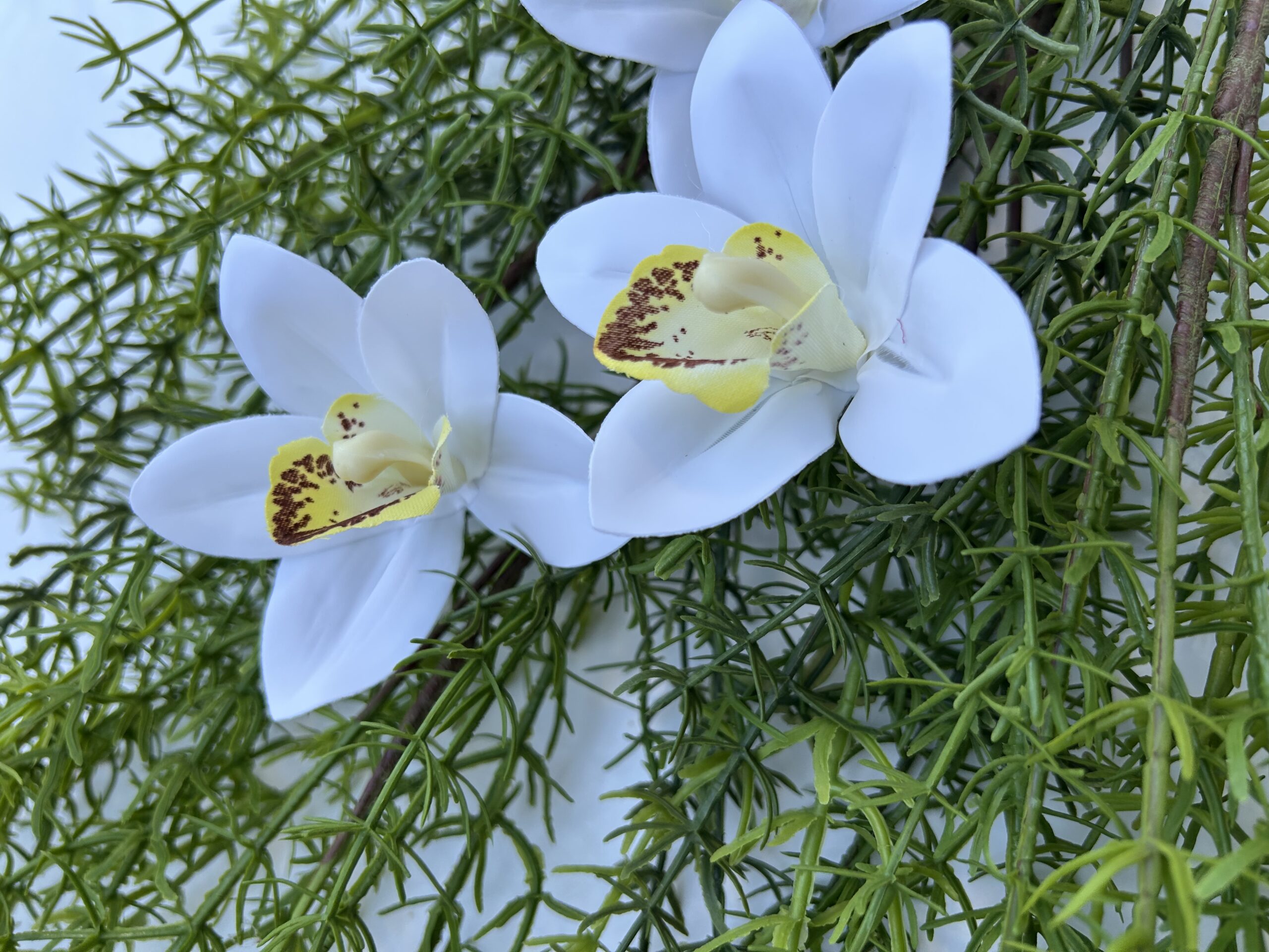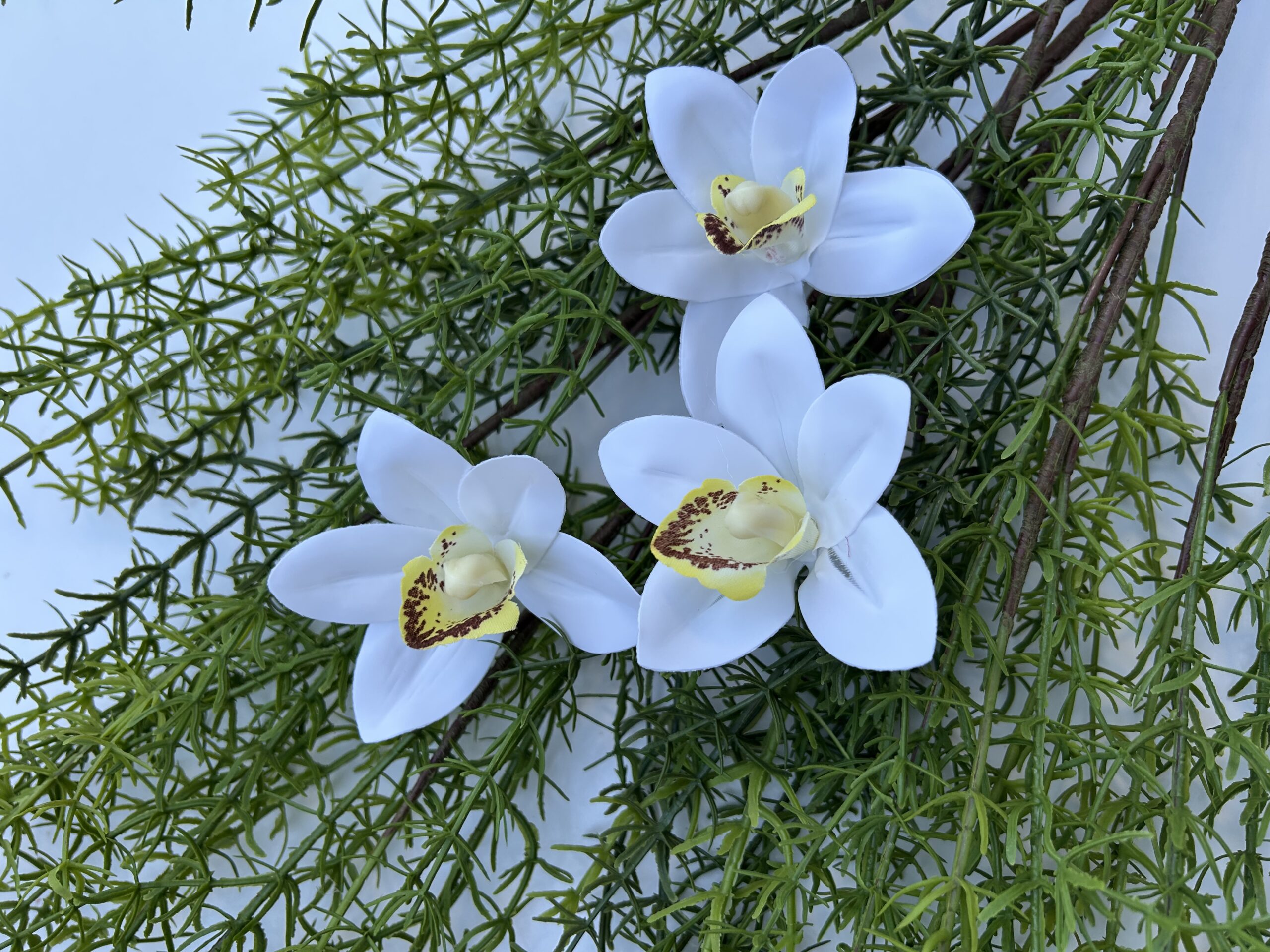 Штучний цимбідіум особливо цінується за свою екзотичність, ніжність та універсальність — він легко поєднується з трояндами, ліліями, орхідеями, гортензією, ранункулюсами та іншими декоративними квітами.