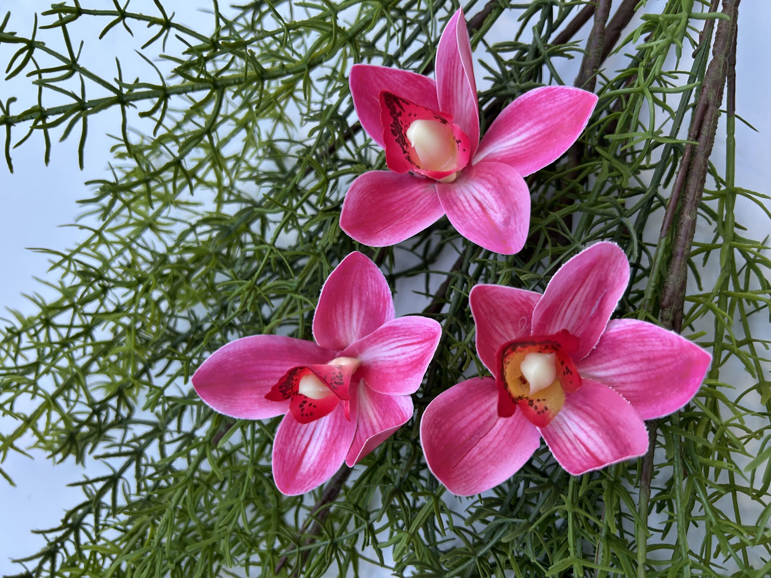 Штучний цимбідіум особливо цінується за свою екзотичність, ніжність та універсальність — він легко поєднується з трояндами, ліліями, орхідеями, гортензією, ранункулюсами та іншими декоративними квітами.
