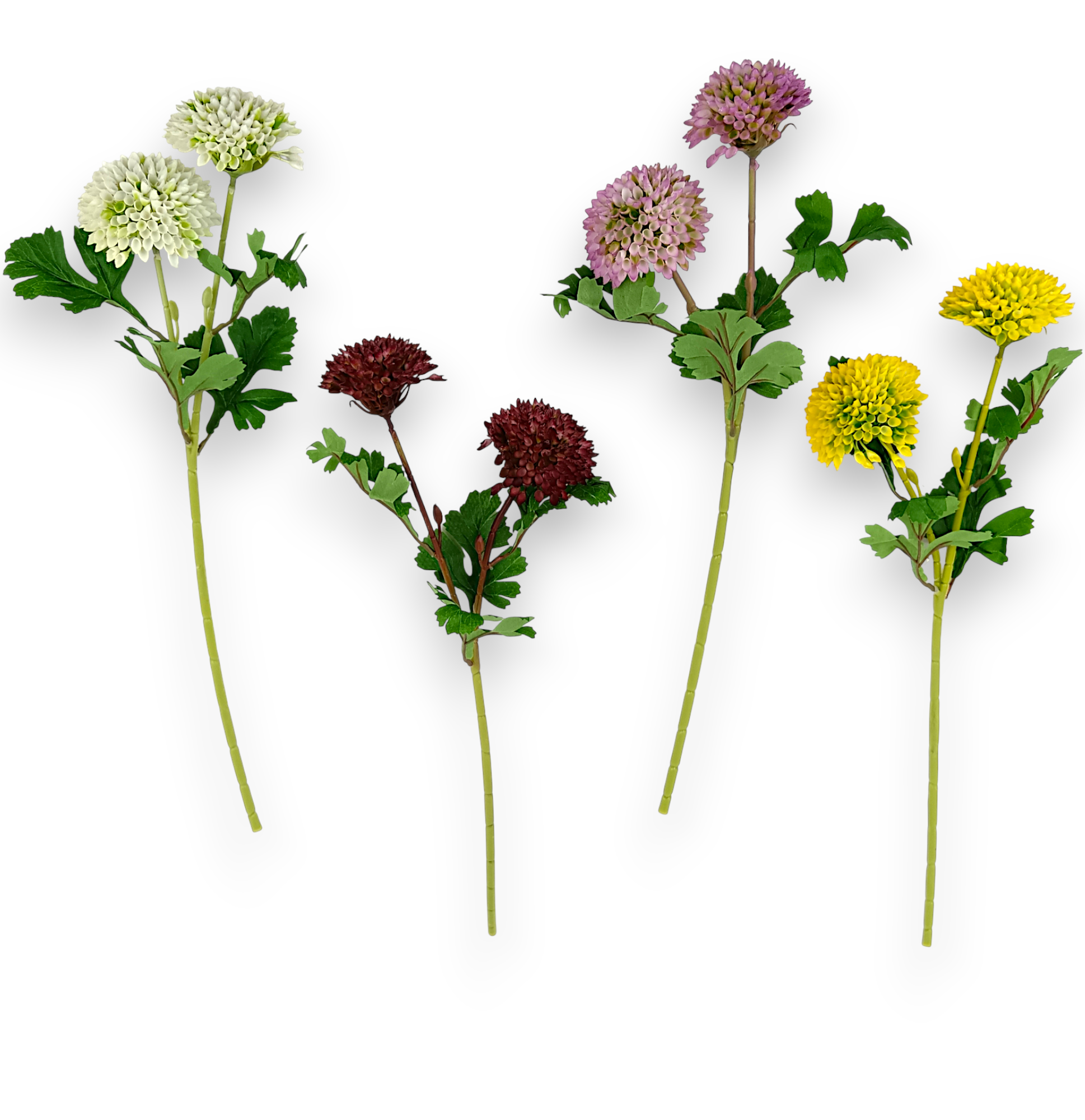 Штучна далія — це розкішна декоративна квітка з пишними багатошаровими пелюстками, що надає композиціям об’єму й елегантності. Квітка виглядає максимально природно завдяки якісному текстилю, реалістичній структурі пелюсток та насиченим відтінкам. Ніжка гнучка, що дозволяє легко формувати букет або декор.