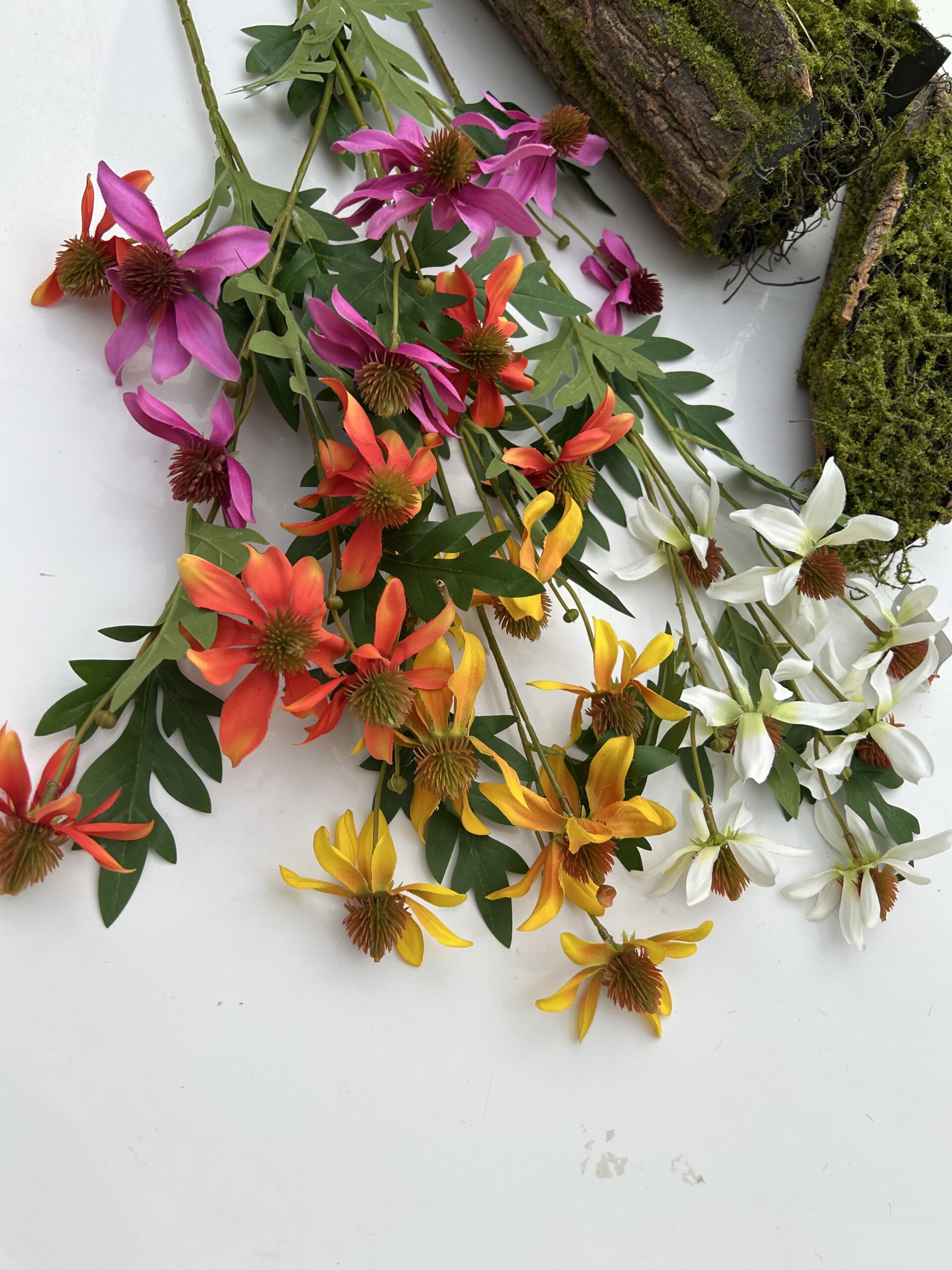 Штучна ехінацея — це оригінальна квітка з характерною формою, яка чудово підходить для стильного та натурального декору. Її видовжені пелюстки та опукла серединка роблять квітку впізнаваною та додають об’єму у флористичних композиціях.